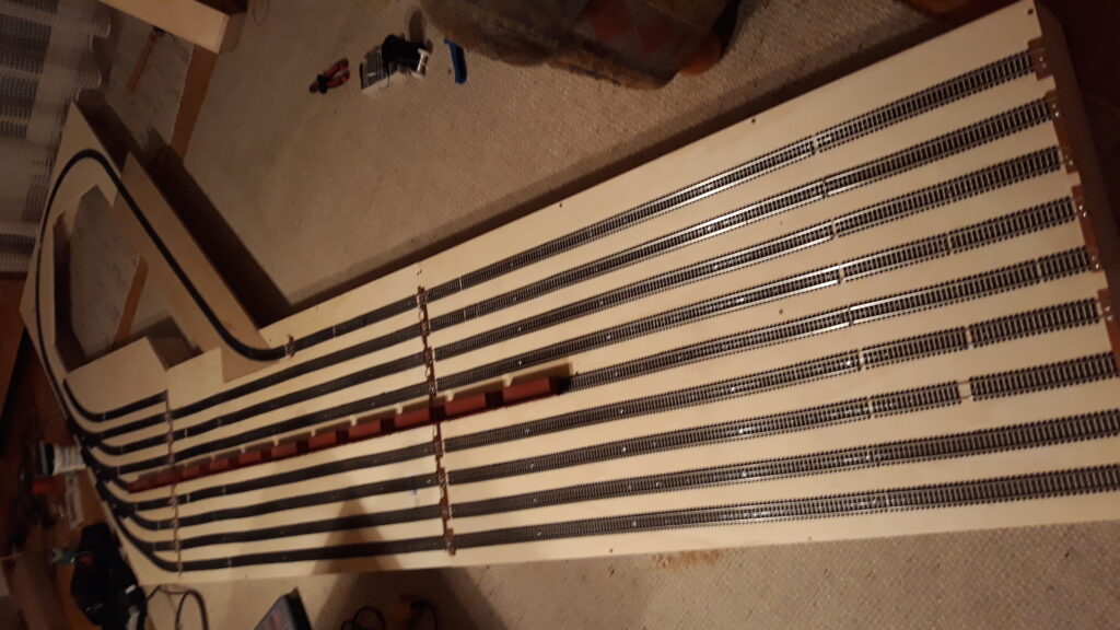 • Die Schattenbahnhofgleise sind verlegt und angeschlossen.