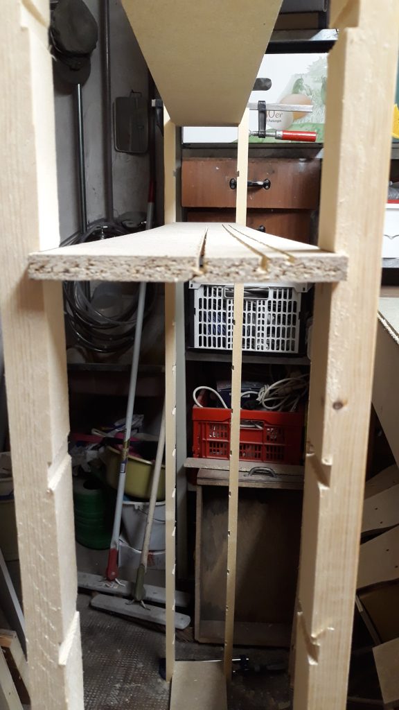Da es zu schwer wäre, eine Vitrine dieser Grösse zu bewegen, teilte ich den Schattenbahnhof in einen Aufzug und ein Abstellregal.