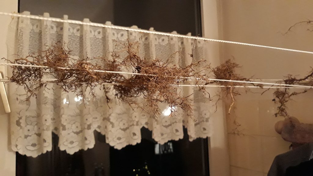 Die meisten Bäume wurden selbst beflockt. Als Gerüst dienten Plastikrohlinge oder aber auch natürliches Material, wie zum Beispiel Wurzeln von Sonnenblumen, die gewaschen und auf einer Wäscheleine im Bad getrocknet wurden.