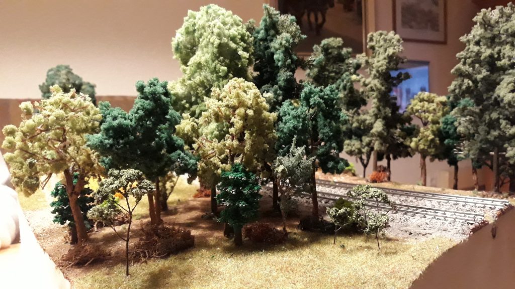 Mein Vater bastelt die Bäume und Häuser und gestaltet die Module. Deswegen entschied ich mich auch für eine Modulanlage, damit er gemütlich im Wohnzimmer am Modul basteln kann und nicht im kalten Hobbyraum in anstrengender Haltung .