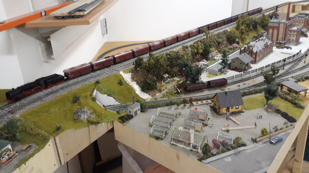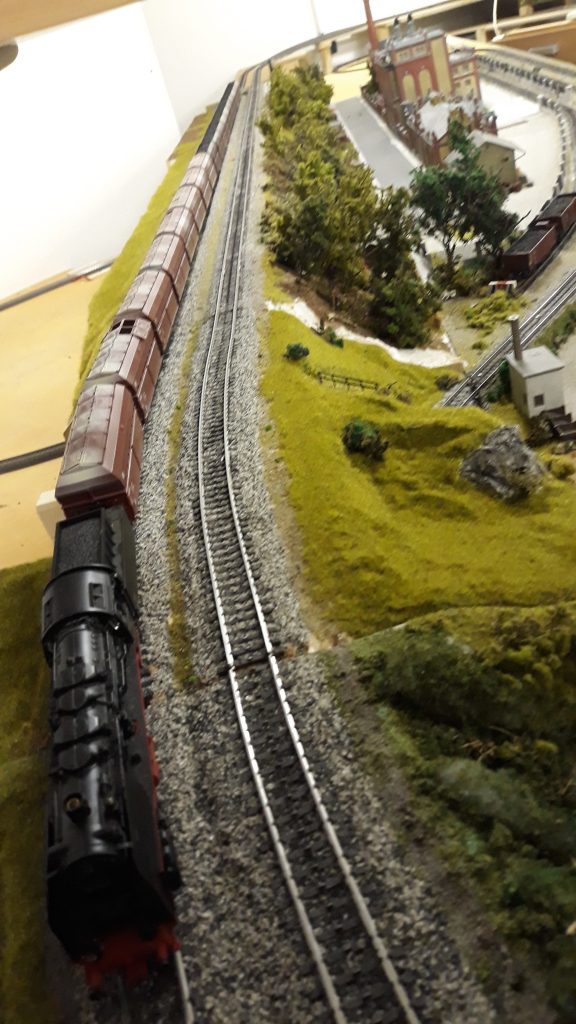 Letzten Mittwoch (10.06.20) waren ein paar Freunde meines Vaters da und haben sich die Bahn angesehen. Da der Automat leider nicht fertig wurde, war es etwas stressig alles am Laufen zu halten. Zusätzlich wollte ich die Nebenbahn dann auch noch vorführen. Also mit der 80er in den Bahnhof gefahren, Güterzug angekuppelt und losgefahren. Und prompt wurde ich gerügt „Der hat aber jetzt keine Bremsprobe gemacht“. Mist-Fehler…zu schnell losgefahren 🙂